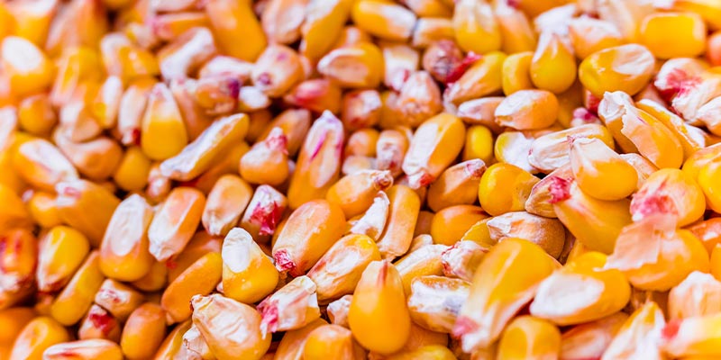 Dried corn, 13-15% moisture, available in bulk delivered to your farm.